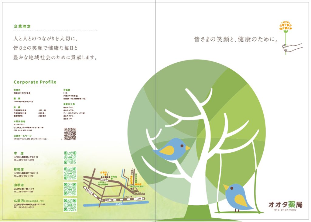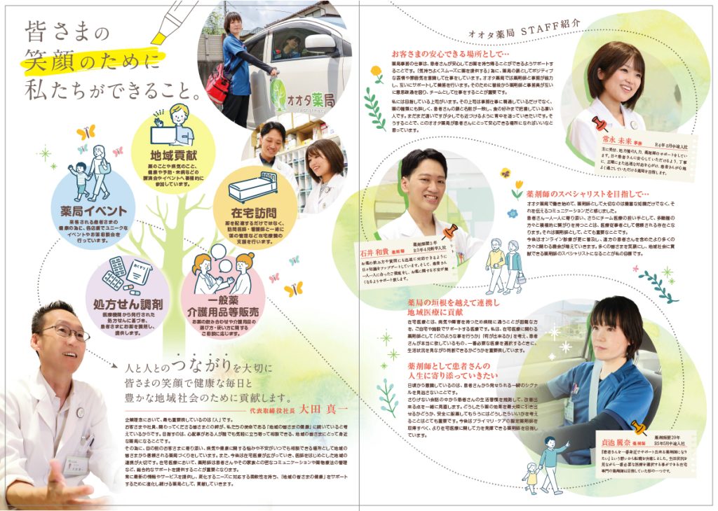 白を基調にしつつ、オオタ薬局様のイメージカラーである黄緑を効果的にデザイン。